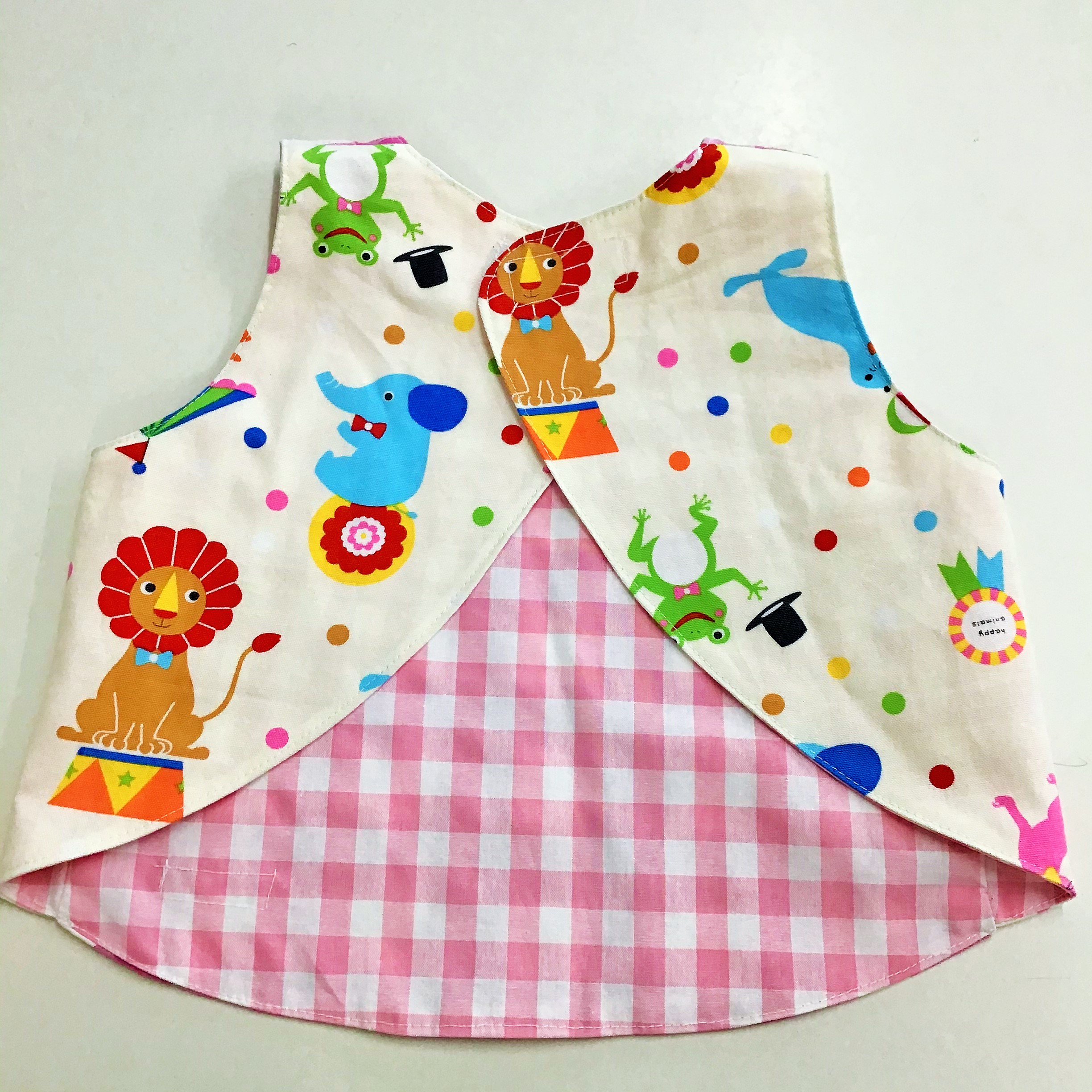 ベスト型スタイ 80〜90cm(ピンクブロックチェック×アニマルサーカス)