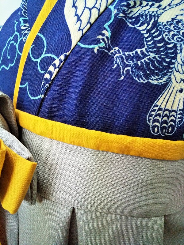 千葉県A.A様ご注文品(着物風カバーオール)≪鷹柄(紺)×グレー≫