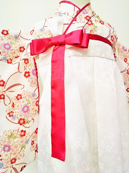 大阪府H.S様 ご注文商品(着物風カバーオール)≪桜結び・白(ちりめん)×桜吹雪・白(綸子)≫