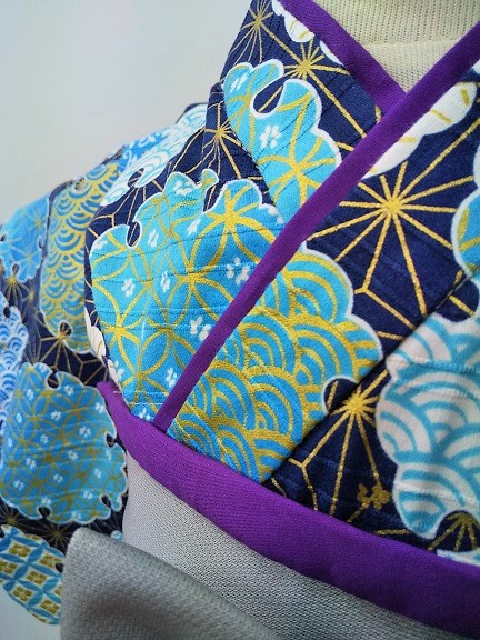 大阪府O.T様 ご注文品(着物風カバーオール)≪麻の葉に金彩雪輪(紺)×グレー≫