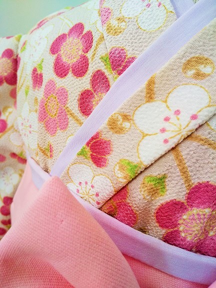 埼玉県K.A様 ご注文品(着物風カバーオール)≪はんなり梅(ベージュ)・ちりめん×ピンク≫