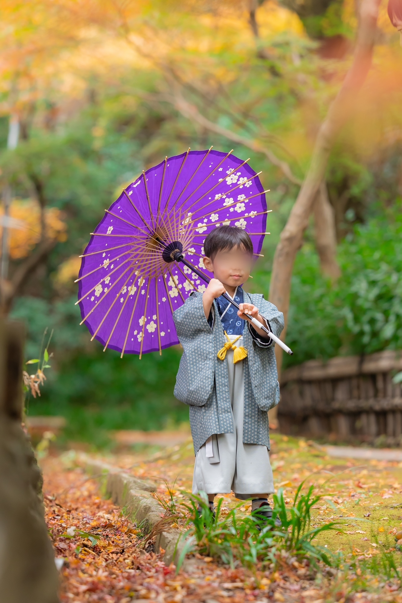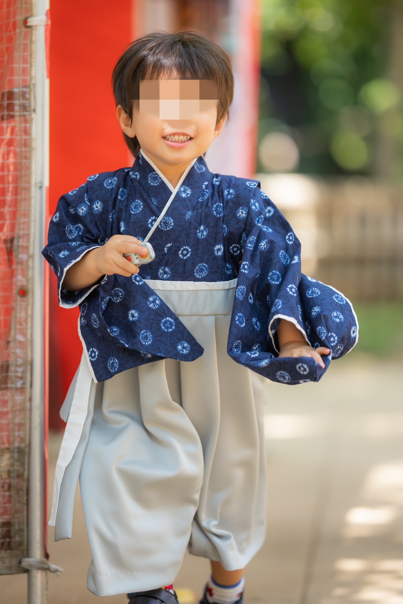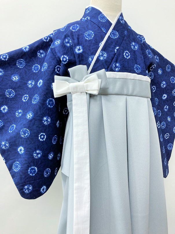 神奈川県I.K様 ご注文商品(着物風カバーオール)≪丸絞り柄(紺)×グレー≫