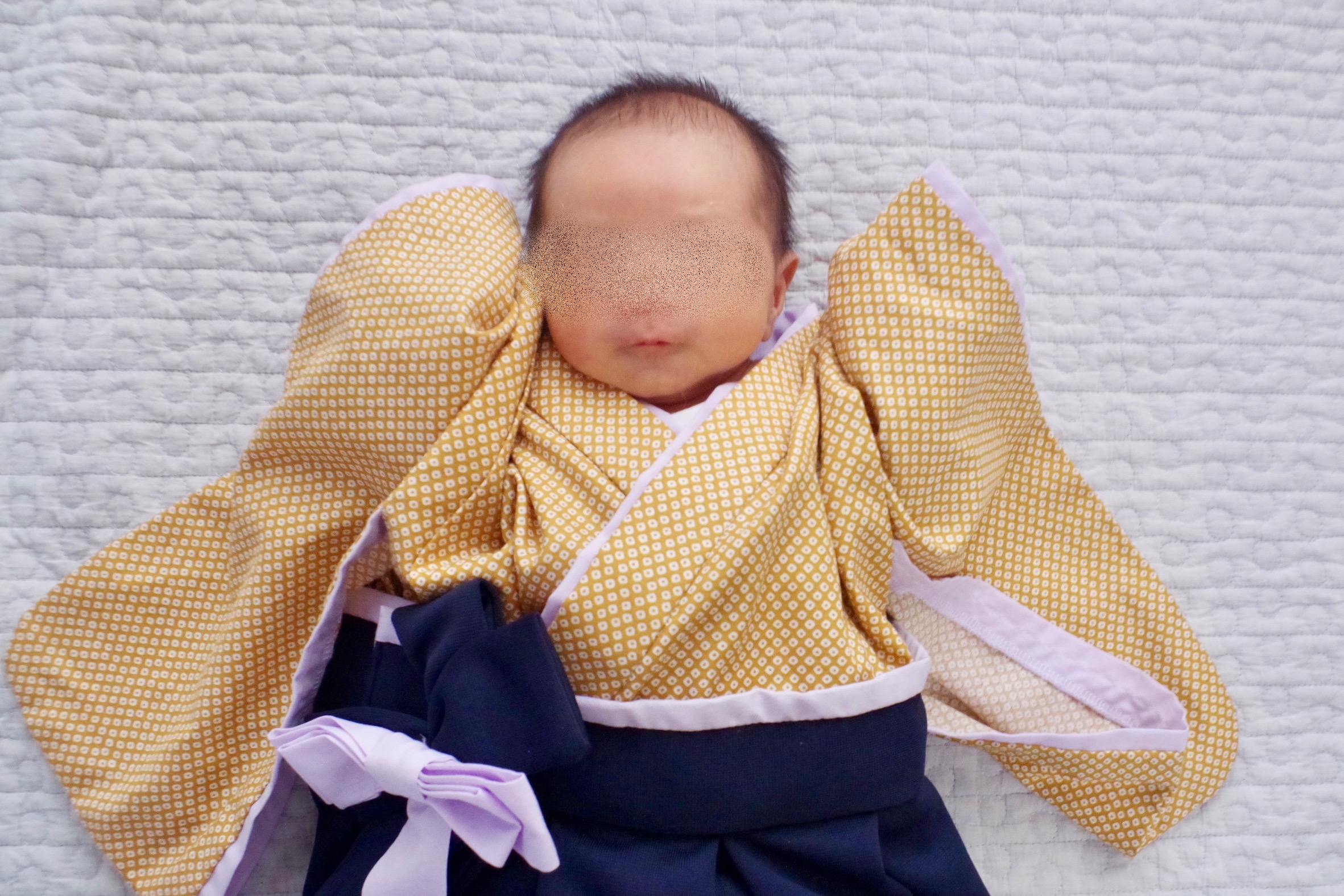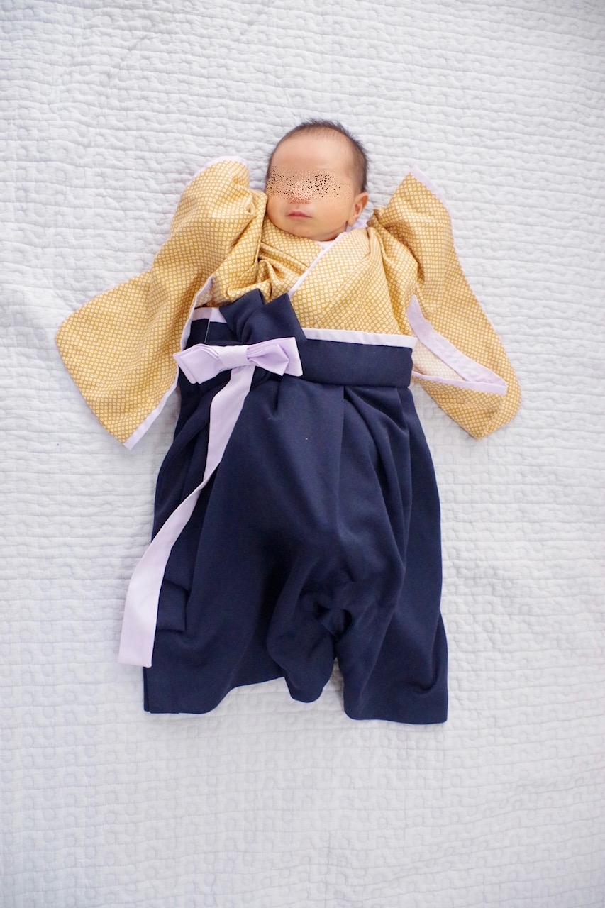 神奈川県I.K様 ご注文商品(着物風カバーオール)≪鹿の子柄(カラシ)×濃紺≫