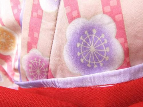 千葉県N.K様 ご注文商品(着物風カバーオール)≪梅ストライプ(ピンク)×朱≫