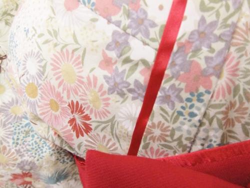福岡県H.K様ご注文品(着物風カバーオール)≪百花繚乱(ベージュ)×赤≫