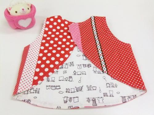 ベスト型スタイ 80cm〜90cm(ピンクドット×ランドリー)