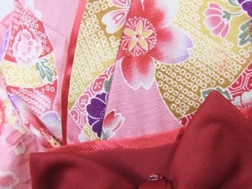 東京都S.K様ご注文品(着物風カバーオール)≪桜と鞠(ピンク)×エンジ≫