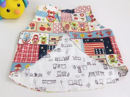ベスト型スタイ 80〜90cm(パッチ風マトリョーシカ×ランドリー)