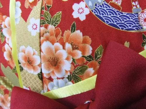 三重県S.M様 ご注文商品(着物風カバーオール)≪大桜と和輪(赤)×エンジ≫