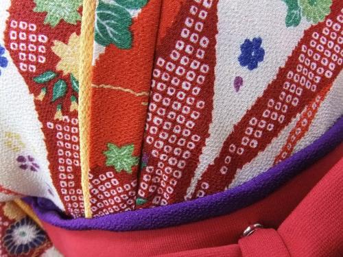 三重県K.H様 ご注文品(着物風カバーオール)≪疋田流水に菊(生地持込)×赤≫