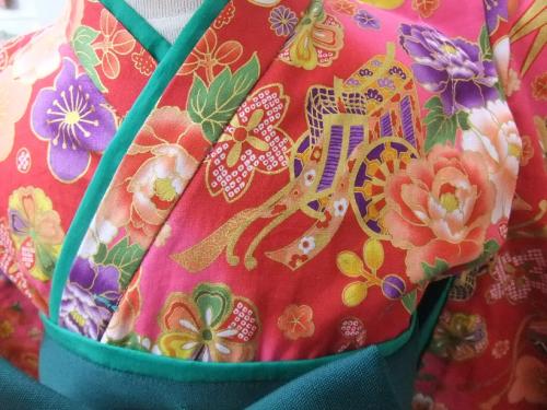 神奈川県Y.T様 ご注文品(着物風カバーオール)≪花鞠鶴(濃いピンク)×深緑≫