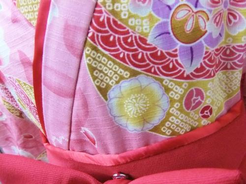 神奈川県K.M様ご注文品(着物風カバーオール)≪桜と鞠(ピンク)×赤≫