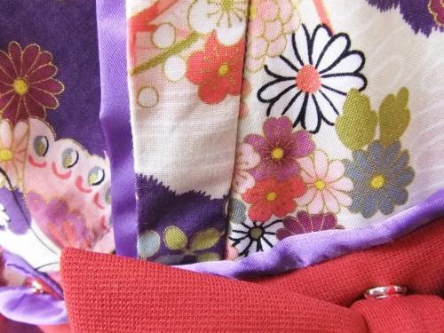 神奈川県N.T様 ご注文商品(着物風カバーオール)≪牡丹・蝶に太鼓橋(青紫)×赤≫
