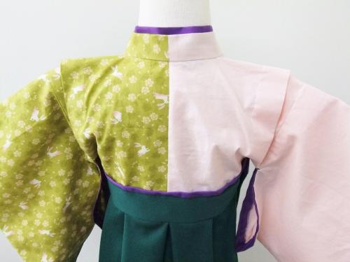 神奈川県O.S様 ご注文商品(着物風カバーオール)【片身変わり】≪兎柄(緑)-桜色×深緑≫