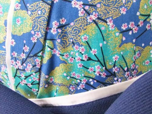 広島県M.M様 ご注文品(着物風カバーオール)≪金織桜柄(青)×紺≫