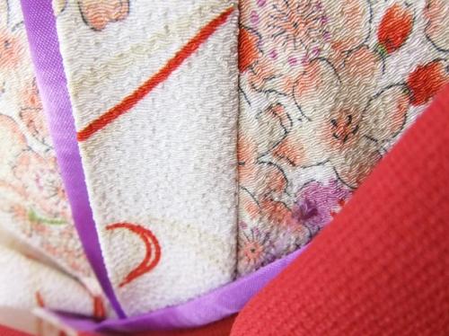 福岡県N.M様 ご注文商品(着物風カバーオール)≪桜結び・白(ちりめん)×赤≫