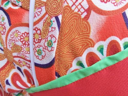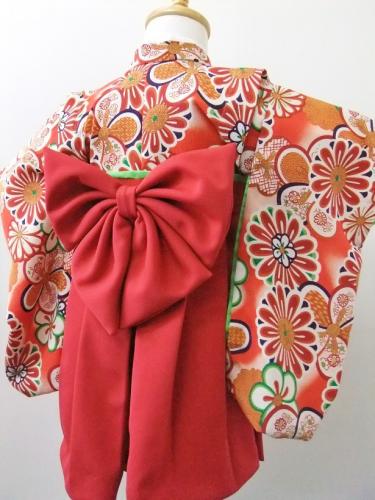 熊本県T.A様 ご注文商品(着物風カバーオール)≪菊と梅柄(ちりめん)×赤≫