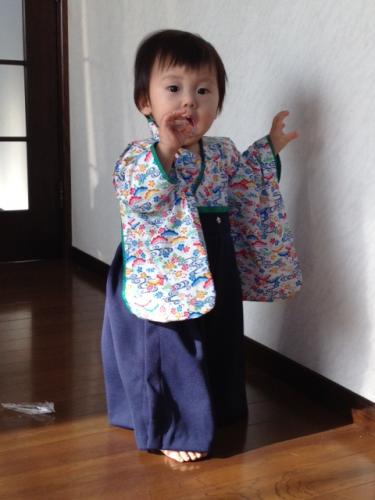 群馬県A.T様 ご注文品(着物風カバーオール)≪紅型・植物柄(白)×紺≫