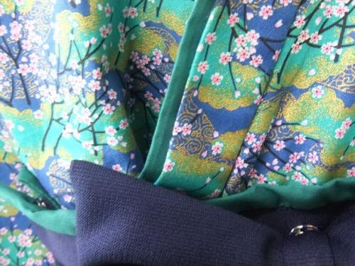 群馬県A.T様 ご注文品(着物風カバーオール)≪金織桜柄(青)×紺≫