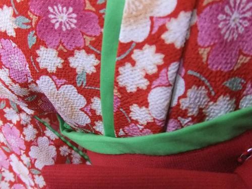 千葉県I.H様ご注文商品(着物風カバーオール)≪八重桜(赤)(ちりめん)×赤≫