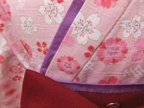 和歌山県K.U様ご注文商品(着物風カバーオール)≪桜満開(ピンク)×エンジ≫