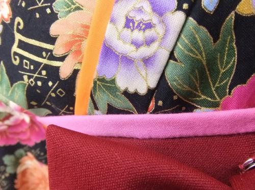 岩手県N.M様ご注文商品(着物風カバーオール)≪牡丹と雅な扇(黒)×エンジ≫