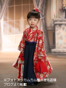神奈川県O.M様ご注文商品(着物風カバーオール)≪さやがた地に花輪(赤)×紺≫