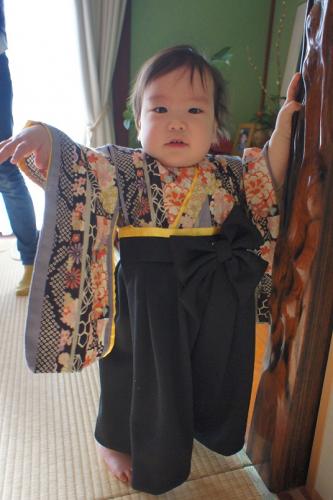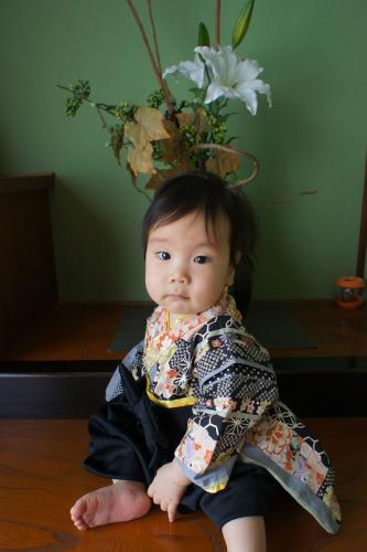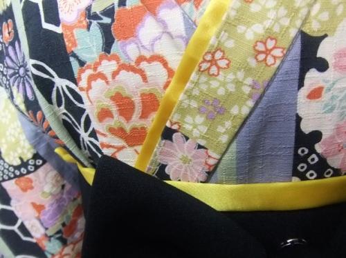 滋賀県T.M様ご注文商品(着物風カバーオール)≪縦縞に雪輪花(黒)×黒≫