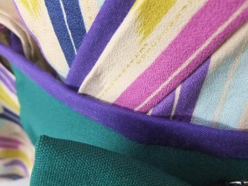 群馬県A.T様 ご注文品(着物風カバーオール)≪モダン矢絣(紫)×深緑≫