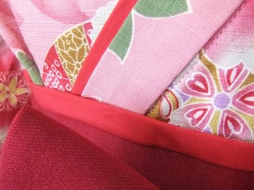 東京都M.Y様ご注文品(着物風カバーオール)≪桜と鞠(ピンク)×エンジ≫