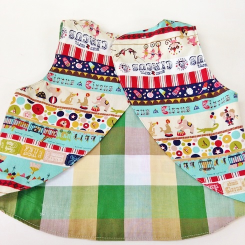 ベスト型スタイ 80〜90cm(サーカス柄×ブロックチェック)