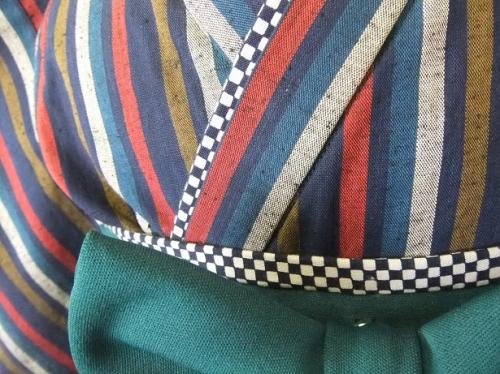神奈川県K.T様 ご注文商品(着物風カバーオール)≪土佐紬調縦縞(三)×深緑≫