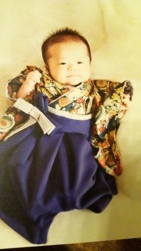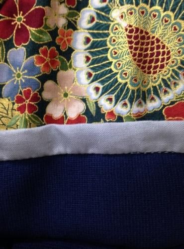 福岡県K.T様 ご注文商品(着物風カバーオール)≪孔雀と花柄(深緑)×紺≫