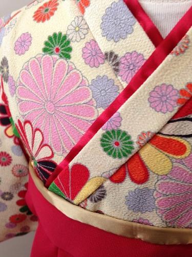 埼玉県T.A様 ご注文品(着物風カバーオール)≪古典菊(アイボリー)ちりめん×赤≫