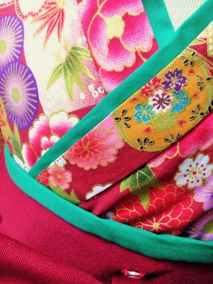 大阪府F.Y様 ご注文商品(着物風カバーオール)≪和花と鼓(赤)×エンジ≫
