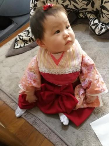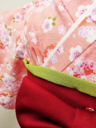 京都府H.H様 ご注文品(着物風カバーオール)≪桜としぼり柄(ピンク)×エンジ≫
