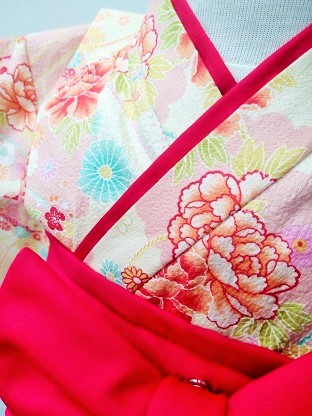 宮城県S.S様ご注文商品(着物風カバーオール)≪着物風彩花柄(ピンク)・綿ちりめん×朱≫