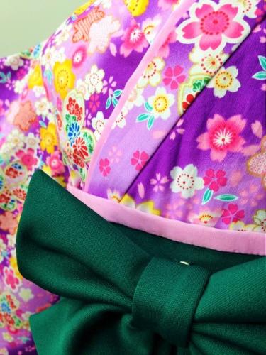 北海道N.M様 ご注文商品(着物風カバーオール)≪斜め満開桜(紫)×深緑≫