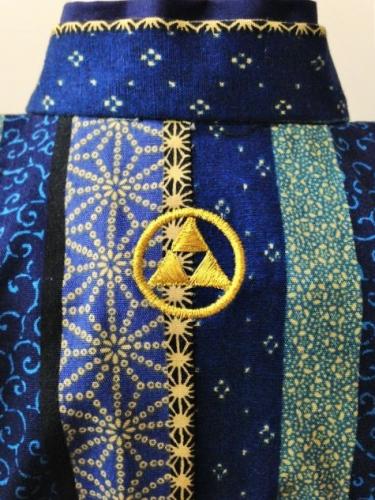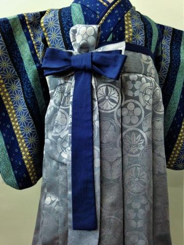 福岡県K.M様 ご注文商品(着物風カバーオール)≪小紋縦縞柄(青)×綸子・家紋柄≫
