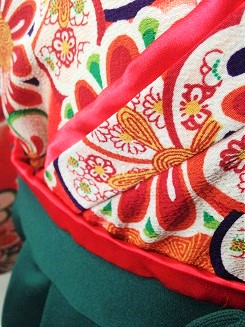 大阪府T.M様 ご注文商品(着物風カバーオール)≪菊と梅柄(ちりめん)×深緑≫