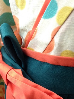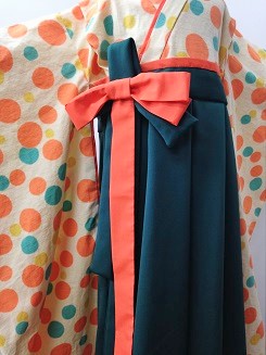 静岡県U.K様 ご注文品(着物風カバーオール)≪ふんわり水玉(オレンジ)×深緑≫