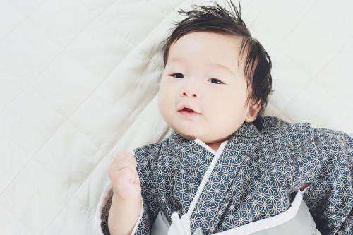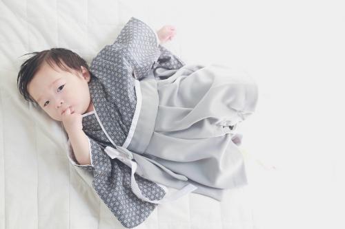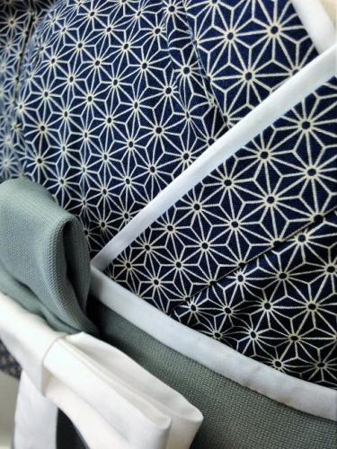 東京都M.S様 ご注文商品(着物風カバーオール)≪麻の葉柄(濃紺)×グレー≫