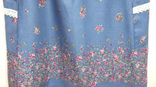 落ち着いた色合いのブルーによく映える花柄。