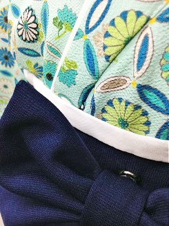 東京都M.S様ご注文品(着物風カバーオール)≪七宝かこみ菊(水色)・ちりめん×紺≫