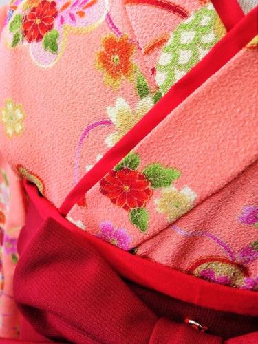 岡山県F.R様 ご注文品(着物風カバーオール)≪華手まり(ピンク)(ちりめん)×エンジ≫