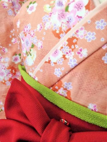 大阪府M.J様 ご注文品(着物風カバーオール)≪桜としぼり柄(ピンク)×エンジ≫