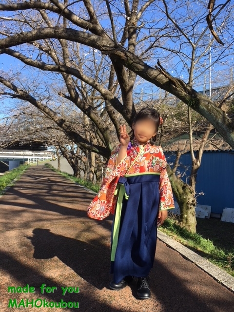 静岡県S.T様 ご注文商品(着物風カバーオール)≪菊と梅柄(ちりめん)×紺≫