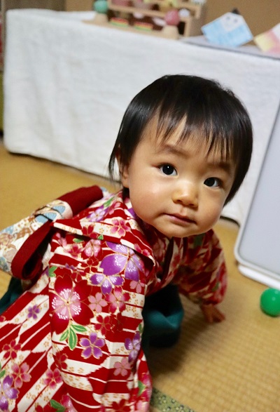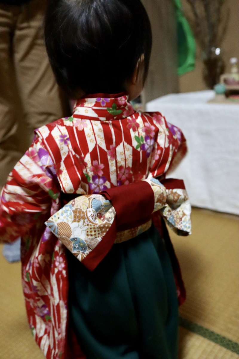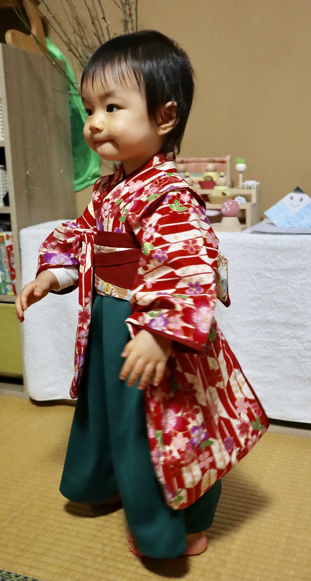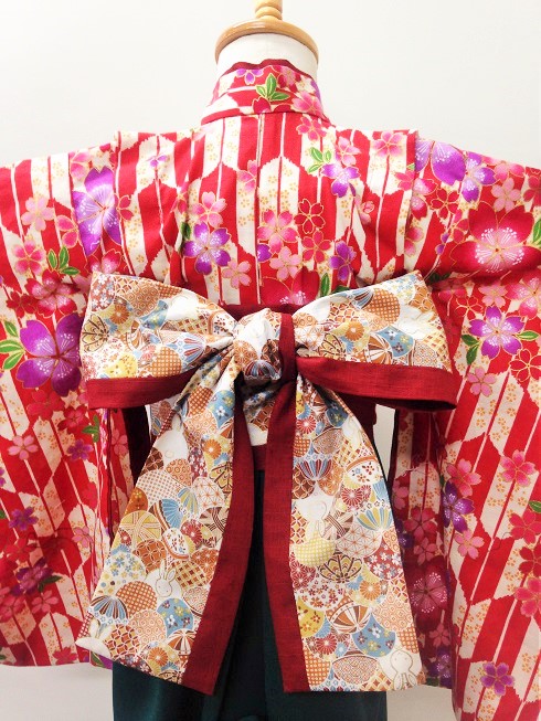 神奈川県W.N様 ご注文商品(着物風カバーオール)≪矢絣桜(赤)×深緑≫