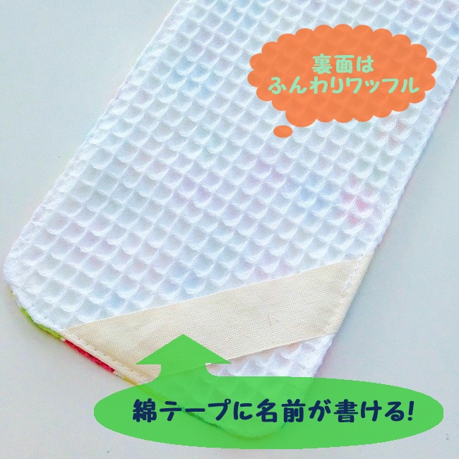 表は柔らかいダブルガーゼ、裏はふわふわのワッフル生地を使用。