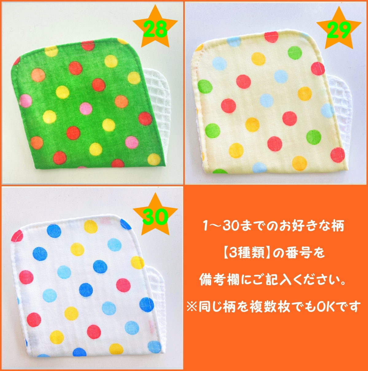 30種類から3枚選べる!≪ハーフハンカチ≫組み合わせ自由